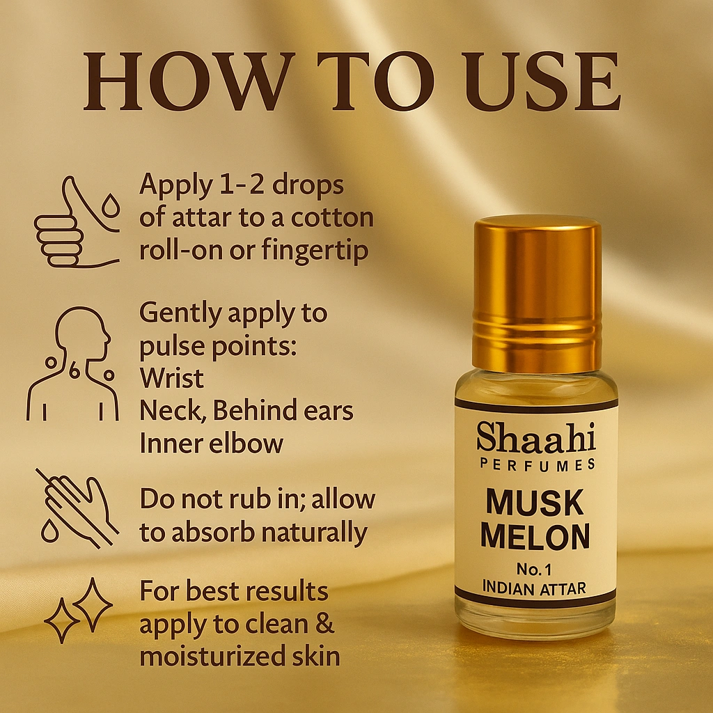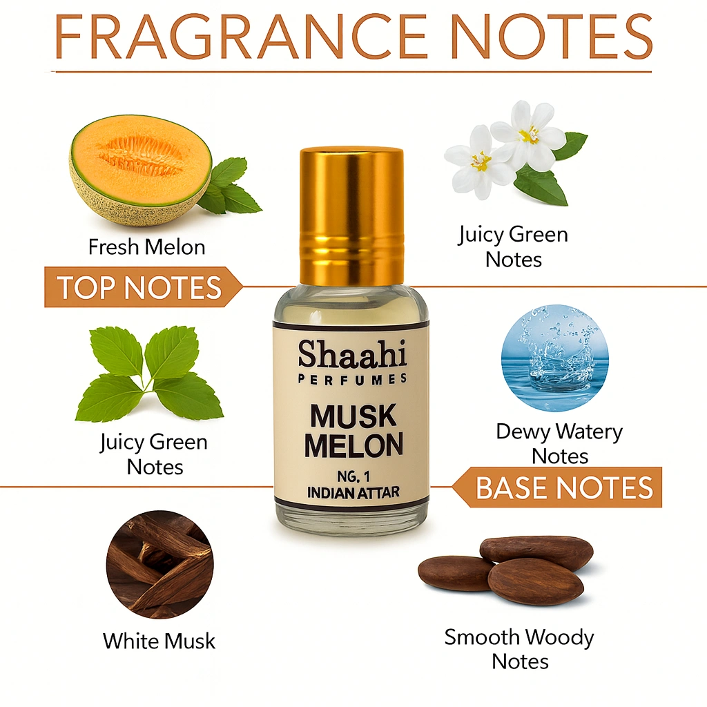 Musk Melon Attar, crafted in Kannauj, blends juicy melon freshness with soft musky undertones for a light, refreshing and modern fragrance profile. This alcohol-free, long-lasting attar is traditionally distilled to deliver a smooth and uplifting scent perfect for daily wear and warm weather.