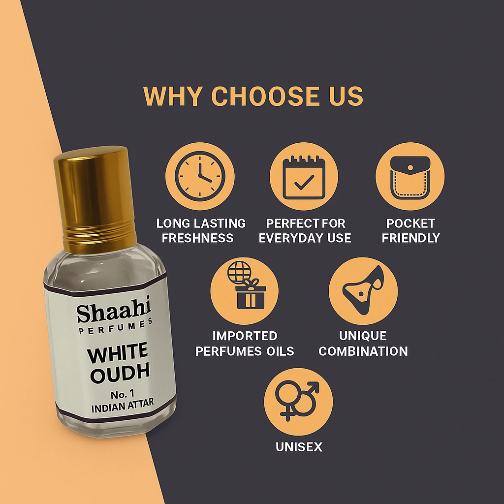 White Oud Attar, crafted in Kannauj, blends smooth woody notes with soft musky and lightly sweet undertones for a refined and elegant fragrance. This alcohol-free, long-lasting attar is traditionally distilled to deliver a clean yet luxurious scent perfect for daily wear and special occasions.